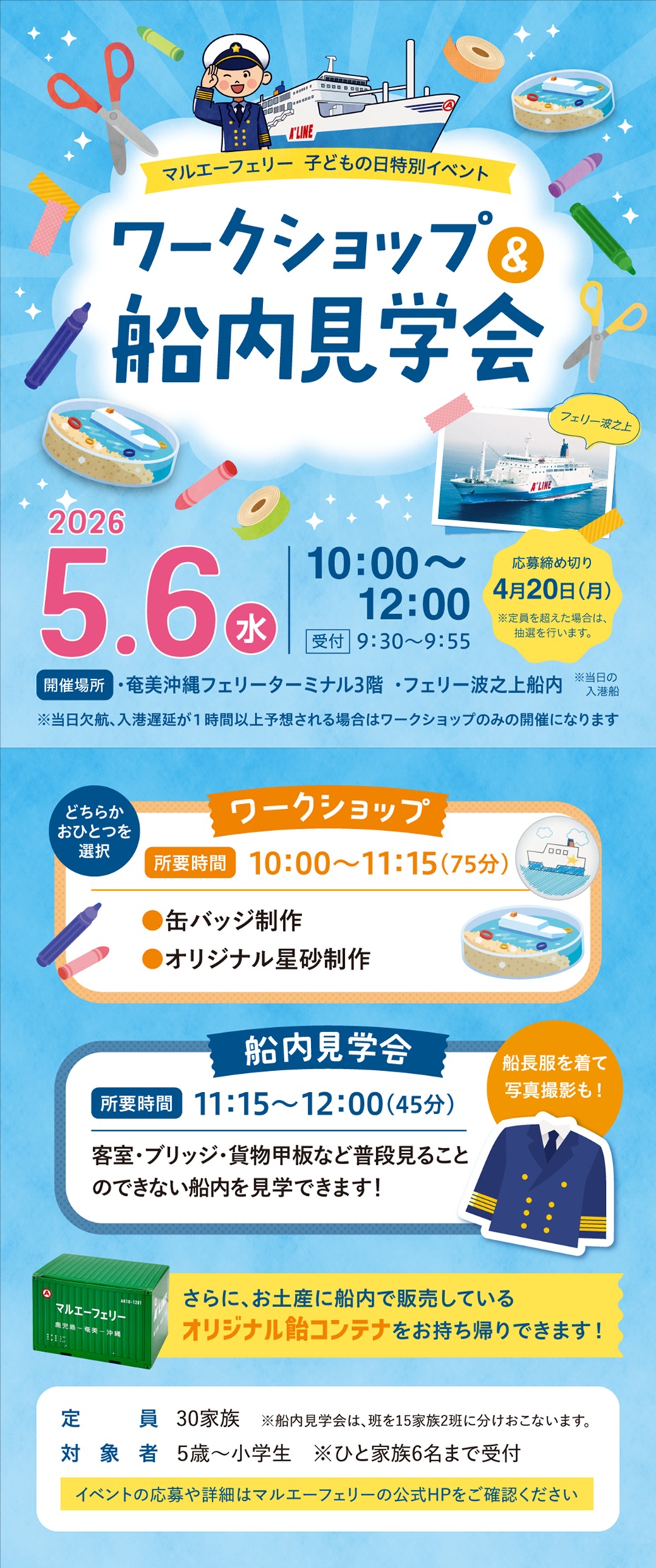 【子どもの日特別企画】 5月6日(水) ワークショップ&船内見学会 開催
